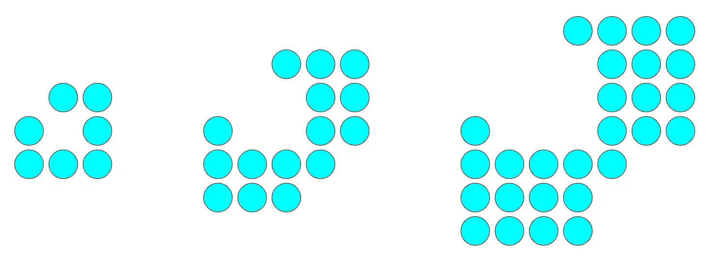 Below is one example of a visual pattern, and the linked website has hundreds. What will the next step look like? How do you see it growing? Can you come up with a general rule?