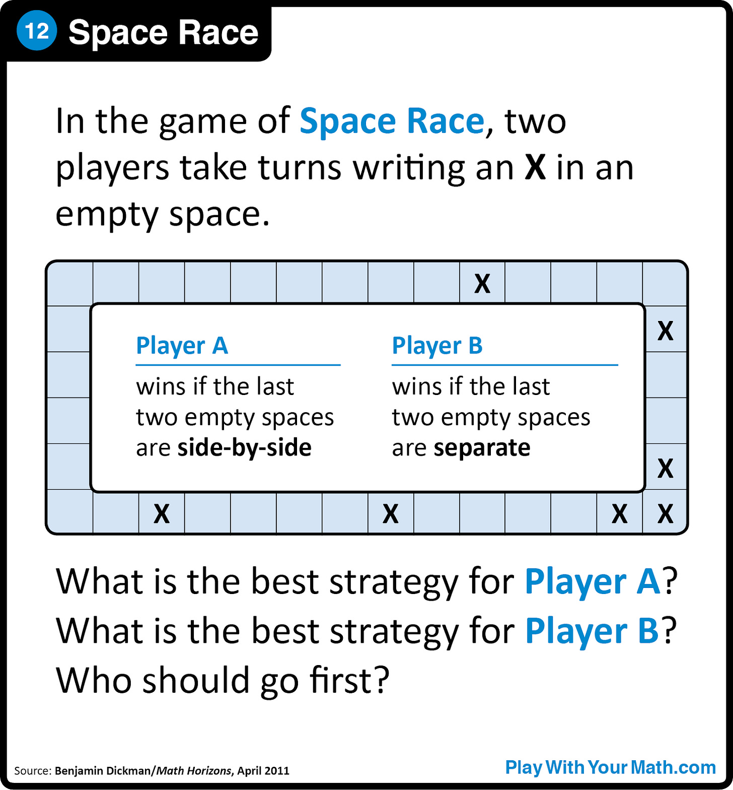 • The game is fun on its own, but it’s also fun to try to figure out the ideal strategy. One way to do this is to play with different numbers of objects. What is the ideal strategy if there is 1 object? 2 objects? 3? 4? 5? Look for patterns!