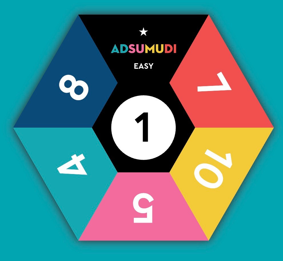 Adsumudi is a number game with a target number in the middle, and five numbers to use around the outside. The goal is to use the numbers on the outside and the operations addition, subtraction, multiplication, and division to make the target number.
