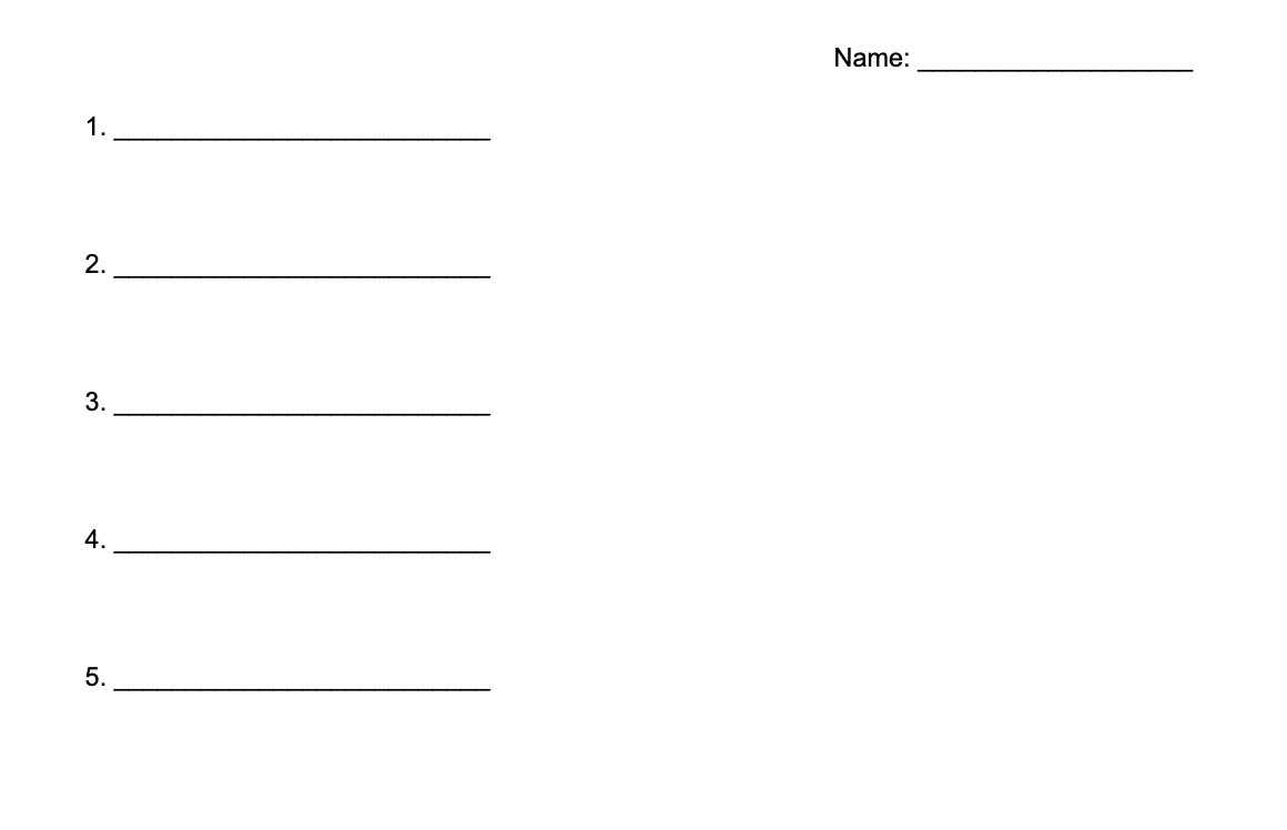 Asking a single question can be a good check for understanding, but in other cases I can get much better information by asking multiple questions. I always keep a big stack of half-sheets with five blanks on them in my classroom. Here’s the template if you’d like to use it.