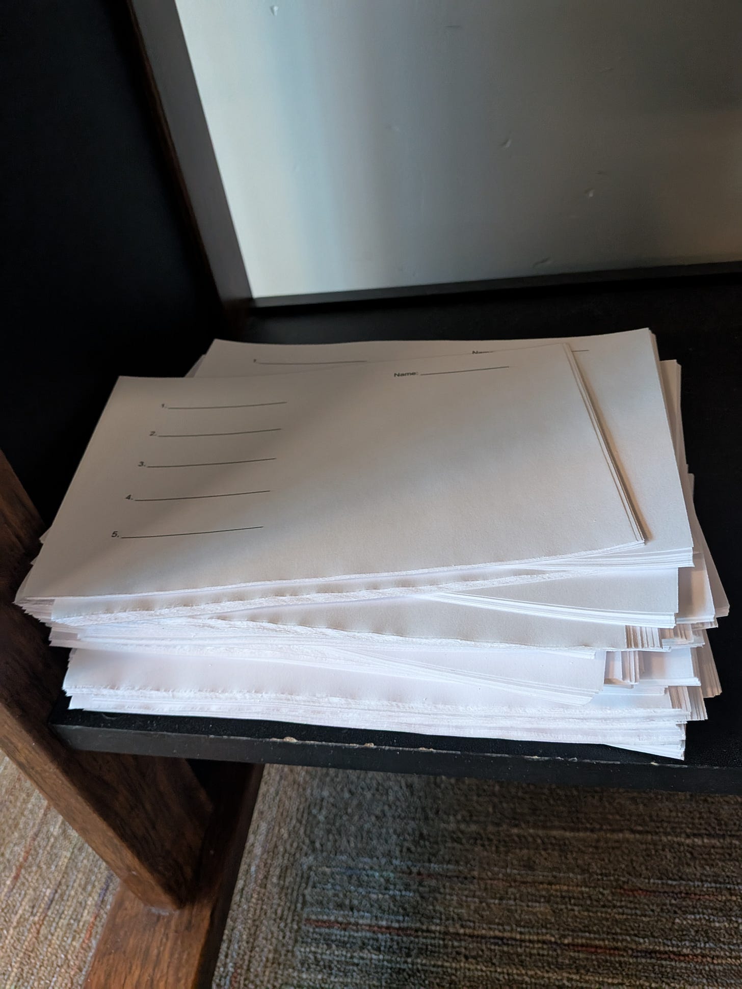 A lot of teachers have moved to technology to check for understanding. Having students open up their Chromebooks and using some digital tool that shows me their answers right away is certainly tempting. I’ve done plenty of that in my teaching. But I’ve moved away from it. Technology is just so fickle. This student’s Chromebook is dead and they forgot their charger. That student is checking their email. The other student has made their background some weird animated thing and is showing it to the students behind them. I’m not categorically against Chromebooks in class, we use them a bit. But I don’t think they’re the right tool to check for understanding. I want a check for understanding to be fast, easy to improvise, and give me data on every student. Trying to do all that with technology often falls short.