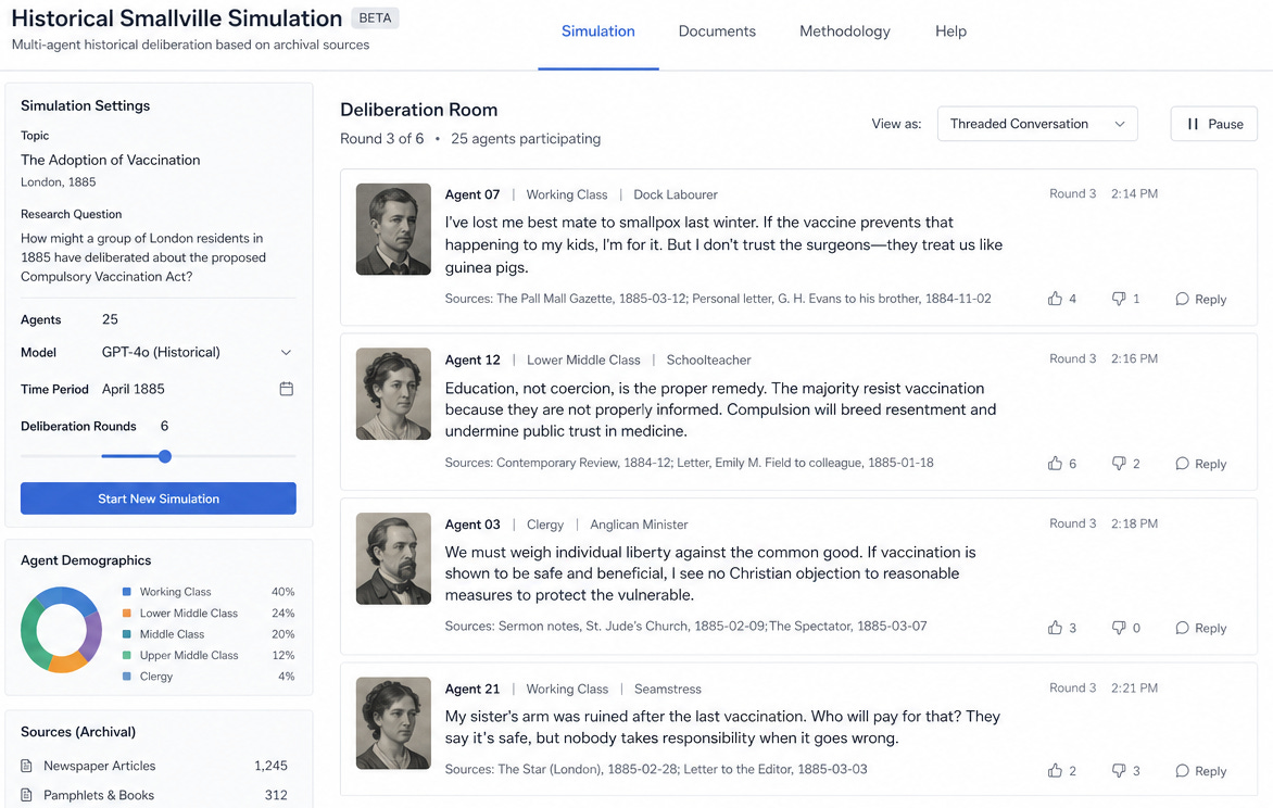 3. Standalone chatbots are just the tip of an iceberg for what Historical LLMs will be able to do. When combined into simulations (of debates, historical decision-making, legal cases, etc) they have the potential to become valuable research tools. More than this: I suspect that by sometime in the 2030s, they will be part of an entirely new field of humanistic research.