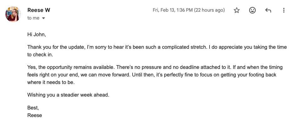 Update on my career-making correspondence with Reese W.