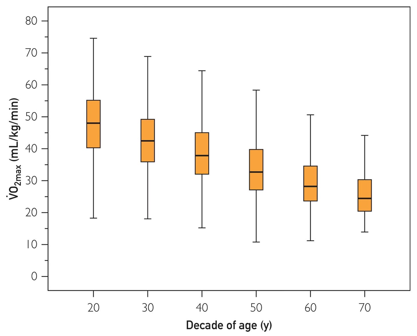 Nearly all of the relevant data related to outcomes are based on exercise on a treadmill or bicycle with METS as the index of cardiorespiratory fitness. We should not be placing much value on our smartwatch data. My Apple Watch gave me encouraging high V02 max data over 6 months to suggest my CRF is well above people in my age group (70+, see reference standards above) but I know the data is woefully unreliable.