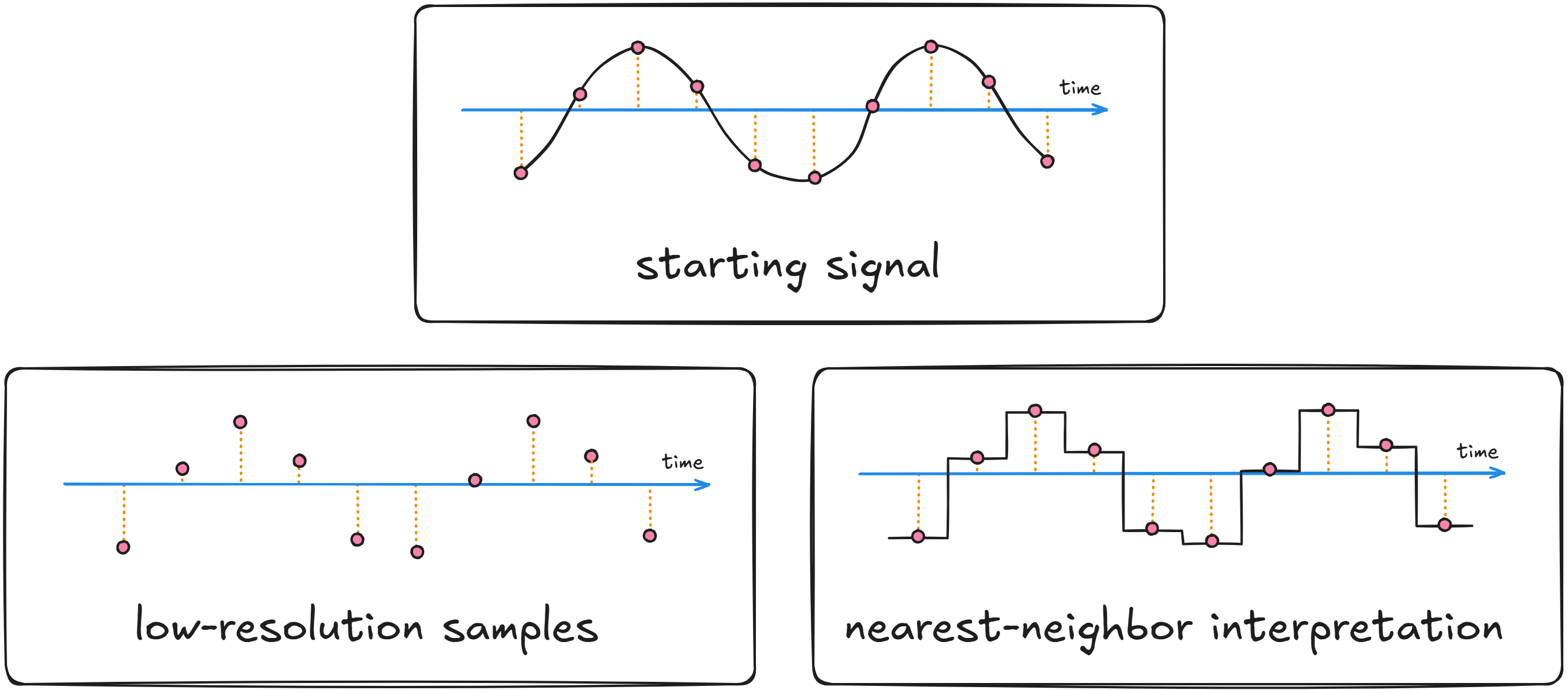 Let’s start with downsampling: what if we divide the data stream into buckets of n samples each, and then map the entire bucket to a single, averaged value?
