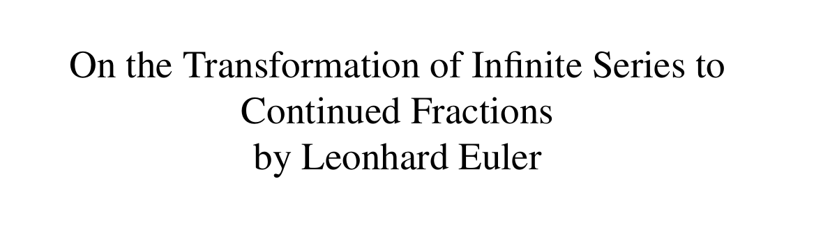 Euler, L. (1785). De transformatione serierum in fractiones continuas, ubi simul haec theoria non mediocriter amplificatur (D. W. File, Trans., 2004). Department of Mathematics, The Ohio State University. (Original work published 1785)