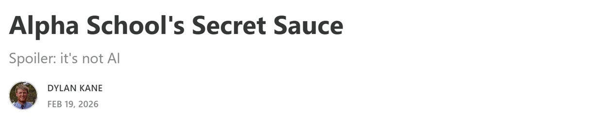 “What’s most novel about Alpha School and Math Academy is their fundamental orientation towards K-12 schooling. The goal, quite expressly, is to minimize it and move on. Move on to what?”