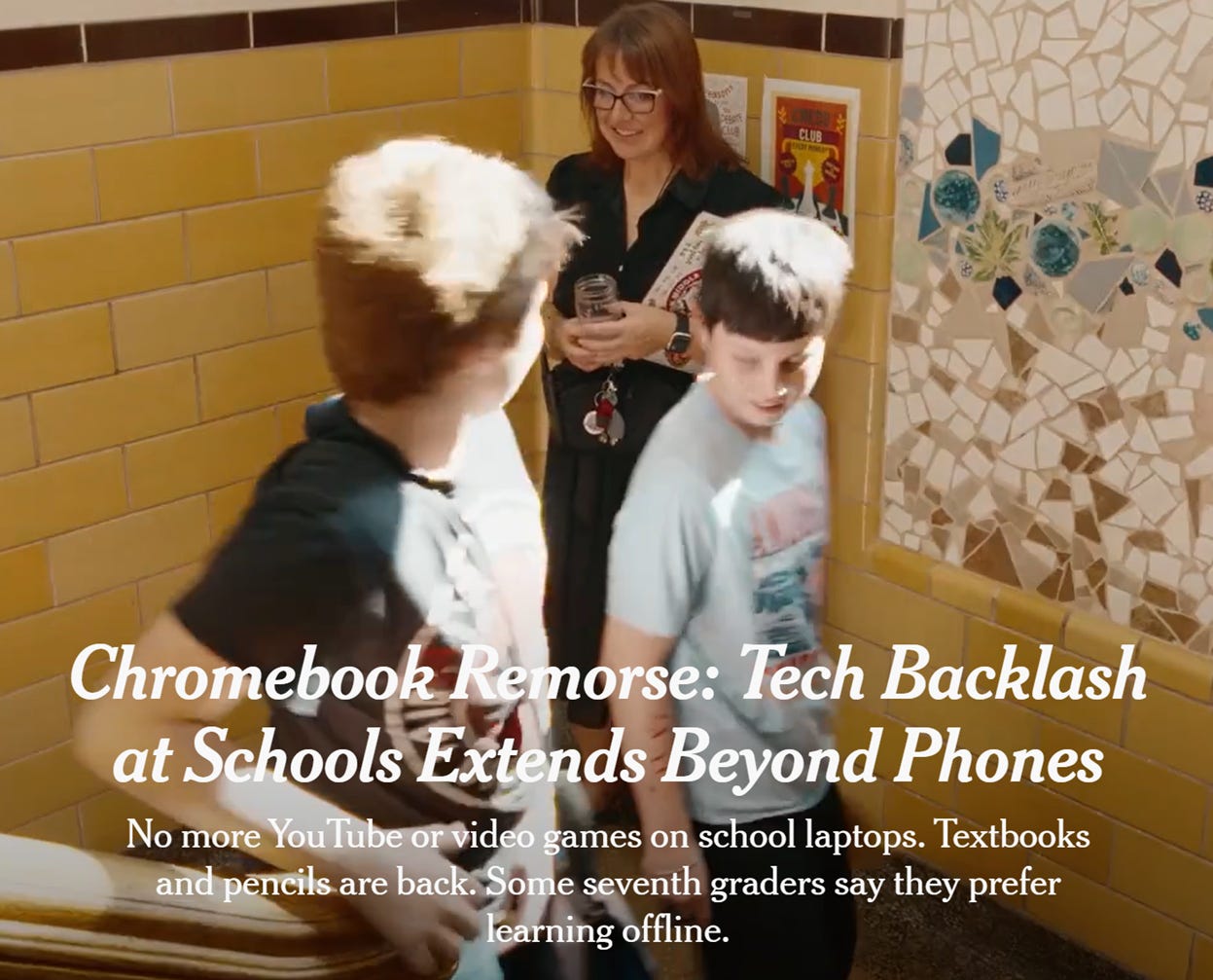 “McPherson Middle School, about an hour’s drive from Wichita, is at the forefront of a new tech backlash spreading in education: Chromebook remorse.