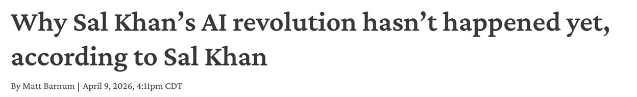 5. Politely point out that Sal Khan, perhaps the most prominent advocate for the capacity of AI to “revolutionize“ education, has recently changed his tune.
