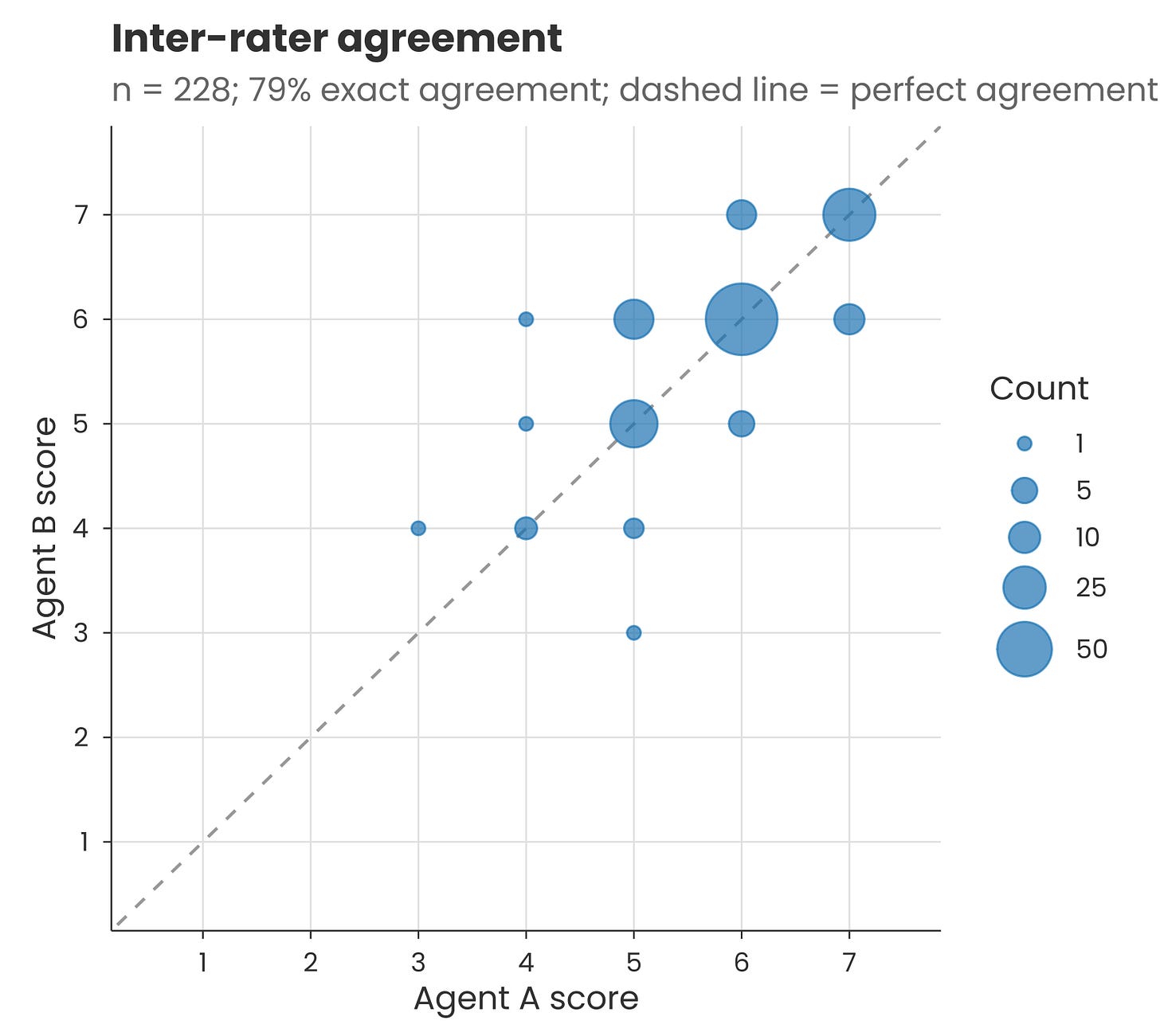Measurement uncertainty: Claude won’t necessarily give an identical output each time. When I ran the sentiment classification prompt provided in the methods on a couple of hundred of the accompanying quotes, there was a 79% match between scores on two separate runs (i.e. two agents each running Claude Opus 4.6). The rest of the scores were slightly higher or lower the second time. This was just for short clear quotes, so the inconsistency may be different for full interview transcripts.